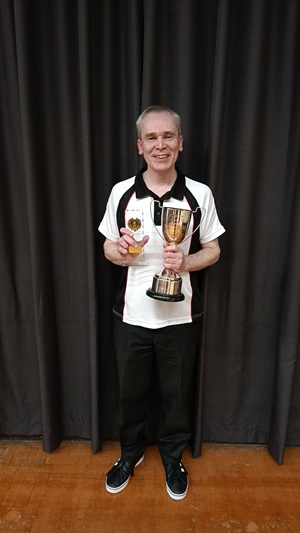 Triples title, adding to his Pairs win from last season, also