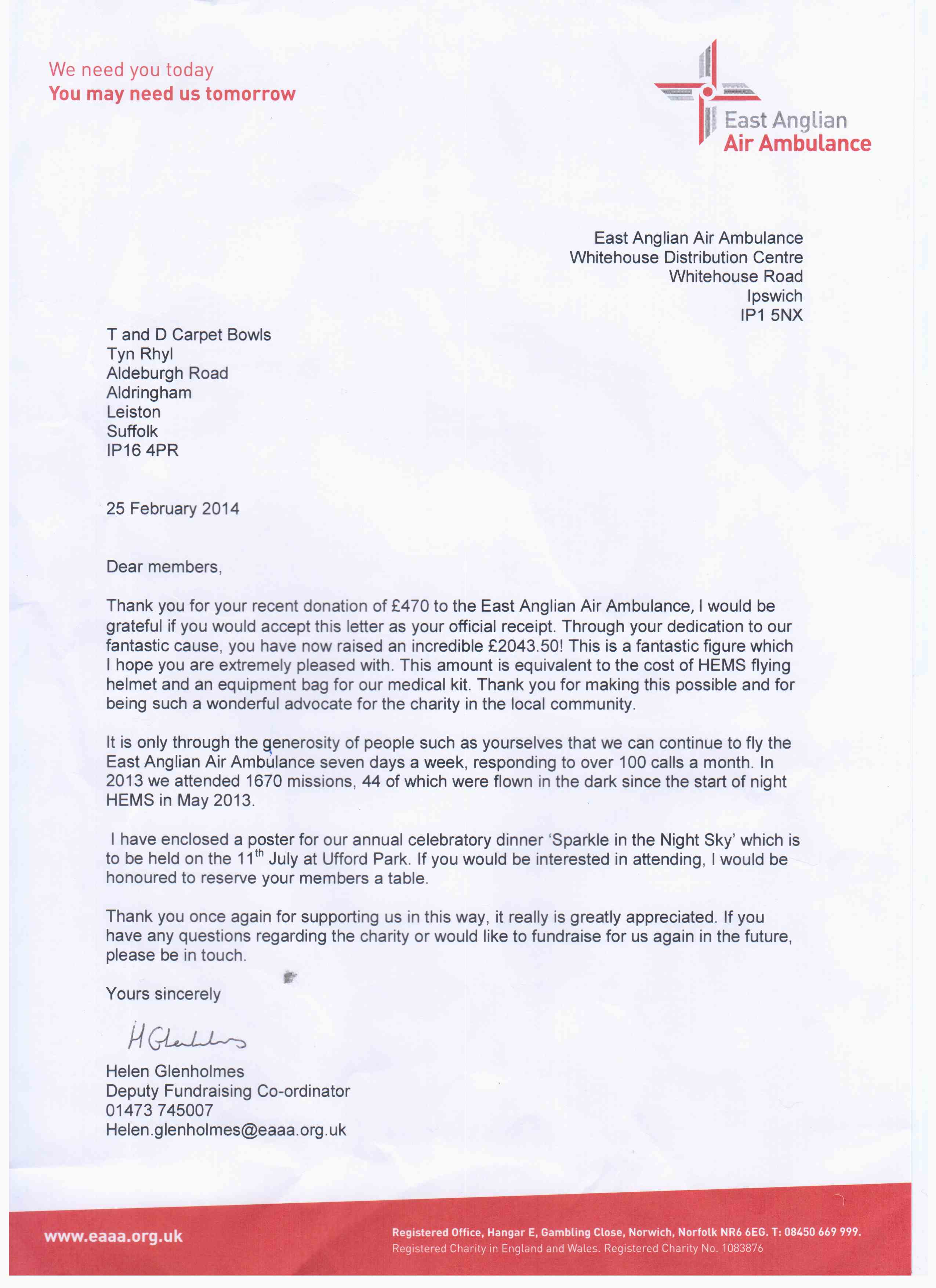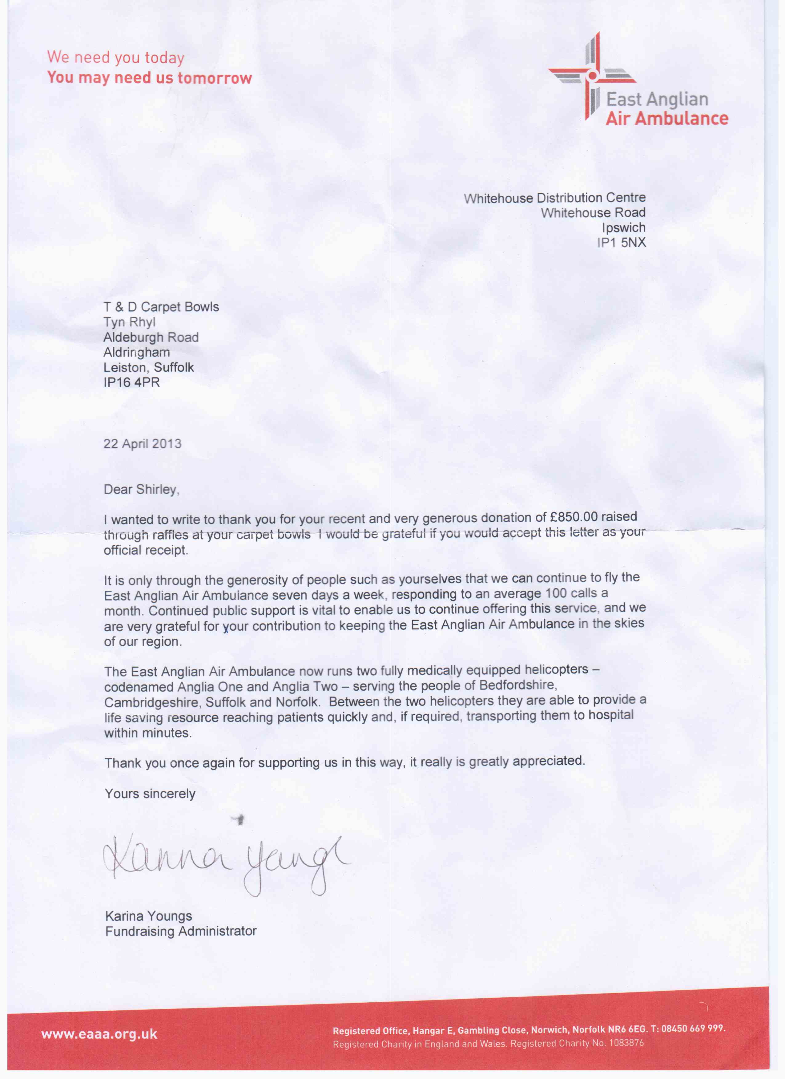 £9917, including £5387 for East Anglia Air Ambulance.